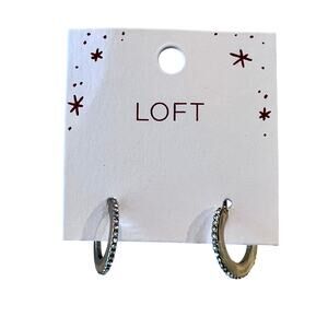 NWT LOFT Gold and Rhinestone 1" Geo Hoop Earrings