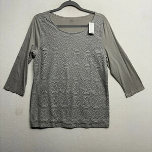 NWT LOFT Lace Front Shirt Gray L 3/4 Sleeve