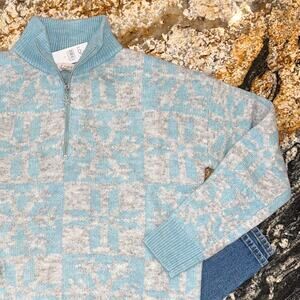 NWT LOFT Light Blue & Grey Cozy Ski Chic Snowflake Zip Sweater
