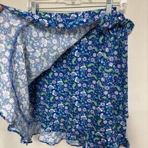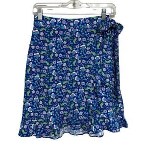 NWT LOFT Linen Blend Floral Ruffle Wrap Skirt - Size 00 Petite