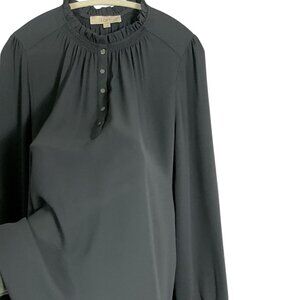 NWT LOFT Long Sleeve, Ruffle Neck Blouse in Dark Gray, XL, 100% Poly
