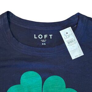 NEW WITH TAGS! This LOFT Optimist Clover Everyday Crew Tee is the perfect addition to any closet! Also perfect for St. Patrick's Day! 100% cotton slub. Crew neck. Short sleeves. Side slits. Machine Washable. COLOR - Navy.
