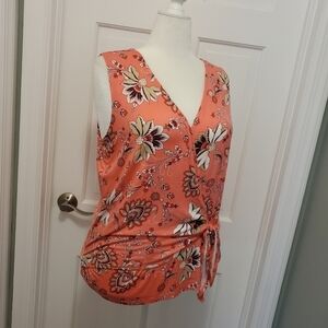 NWT LOFT Outlet Floral Print Faux Wrap Stretchy Knit Sleeveless Top Size Large