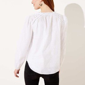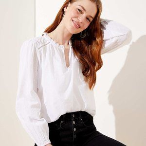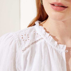 NWT LOFT PETITE EYELET DOTTED SPLIT NECK BLOUSE