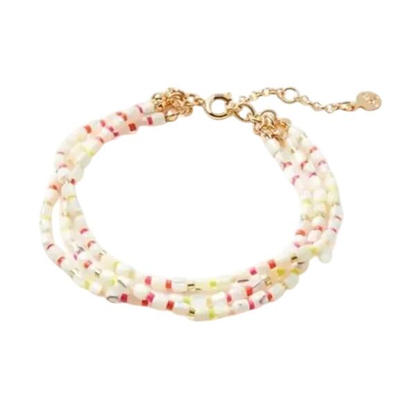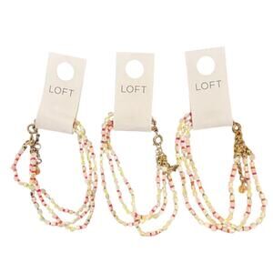 NWT LOFT Pearlized Multi-Strand Ivory, Pink & Yellow Beaded Bracelet