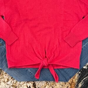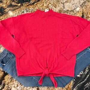 NEW WITH TAGS - RETAIL $63 - This LOFT Fuchsia Tie Hem Sweater is precious and very soft and comfy!! Color is Pink Charm (Fuchsia) I also have this in teal (see last photo) This soft sweater is framed by a mock neck at top and a tied hem at bottom for a femme finish. Mock neck. Long sleeves. • Softly fitted • Soft knit • Hits at hip