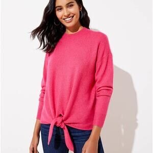 NWT LOFT Pink Charm Fuchsia Tie Hem Soft Mockneck Sweater