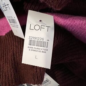 NEW WITH TAGS - RETAIL $70 - - LOFT Pink and Burgundy Striped Tunic Sweater - With a polished mock neck and cool dropped shoulders, this tunic sweater is just what we want to cozy into from lazy mornings to afternoons about town. Mock neck. Long sleeves. Side slits. Hi-low hem. • Fit: Classic — follows your contours with a little room