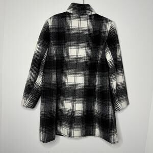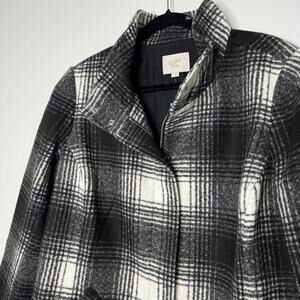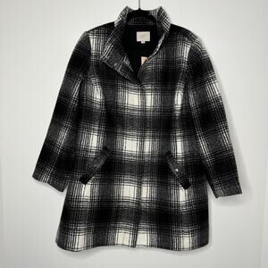 NWT LOFT Plaid Funnel Neck Coat Black White 16