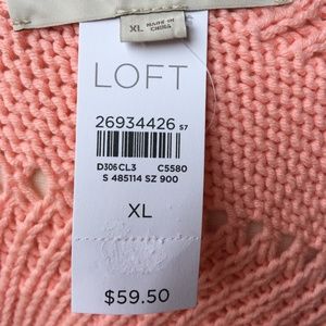 NWT LOFT Pointelle Scoop Back PeachPink Sweater XL