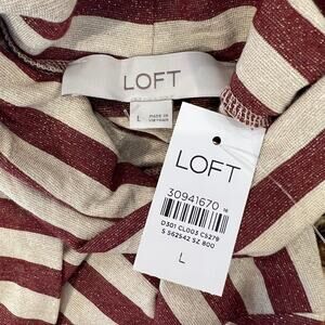 NEW WITH TAGS - RETAIL $35 - This LOFT Shimmer Striped Ribbed Metallic Turtleneck Top is gorgeous! Super soft and stretchy, this understated turtleneck top is a love-forever closet staple. Turtleneck. Long sleeves. COLOR IS RIPE CHERRY (cream and burgundy (metallic threads throughout)• Softly fitted • Soft knit • Hits at hip • 25 1/4" long FABRIC & CARE • 70% Rayon 16% Nylon 9% Metallic 5% Spandex • Machine Washable • Imported