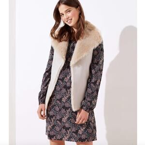 NEW WITH TAGS - RETAIL $110 - SIZE MEDIUM - This LOFT Reversible Mauve Pink Suede Faux Fur Open Vest is precious and perfect for cooler weather! Styled with the coolest fold over collar for modern allure, our rich faux shearling vest layers on the luxe with reversible styling - for two looks in one! COLOR is Rosy Mauve Pink Open front.• Relaxed fit• Structured woven• Hits at hip• 24" long , FABRIC & CARE• Face: 100% Polyester, Faux Fur Face: 100% Acrylic, Faux Fur Back: 100% Polyester• Machine Washable• Imported
