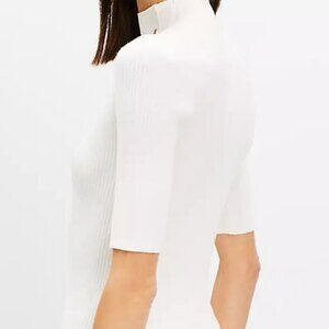 NWT LOFT Ribbed Shoulder Button Mock Neck Sweater Women's XL/12 Cream White