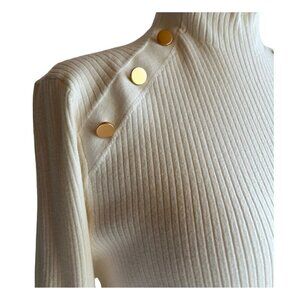 NWT LOFT Ribbed Shoulder Button Mock Neck Sweater Women's XL/12 Cream White