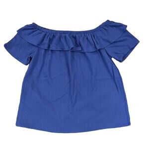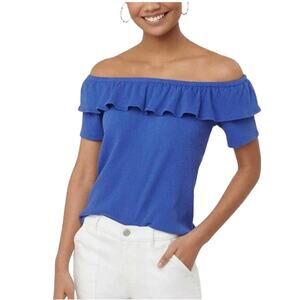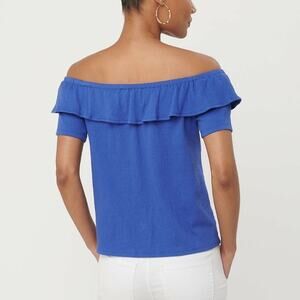 NEW WITH TAGS - SIZE MEDIUM - This NWT LOFT Royal Blue Crinkle Off The Shoulder Top is precious! With flouncy off-the-shoulder styling, this airy crinkle top takes outfits into flirty territory. Elasticized off-the-shoulder neckline. Short sleeves. • Softly fitted • Soft knit • Hits at hip Available in: Blue Fabric & Care • 58% Cotton, 41% Polyester, 1% Spandex • Machine Washable COLOR ROYAL BLUE (I also have this style in gold floral print)