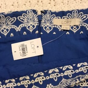 NWT Beautiful Loft skirt Blue & white with intricate edging