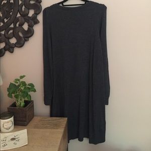 Medium weight sweater dress, dark gray, puckering on the shoulder detail, v neck style, new with tags!!