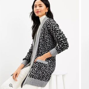 NWT LOFT WOMENS LEOPARD PRINT POCKET OPEN CARDIGAN BLACK/GRAY SZ MEDIUM