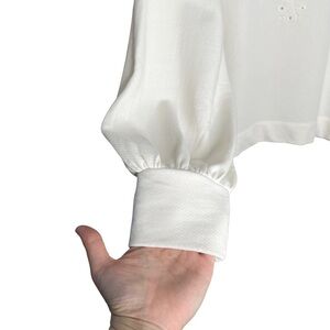 NWT LOFT White Eyelet Pullover Balloon Sleeve Knit Blouse. Size large. In new with tags condition. In a white/off white color. Long balloon sleeves. Floral eyelet details at chest (the holes are see through). 100% cotton knit with a Terry cloth inside.