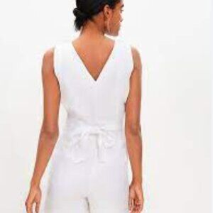 NWT LOFT White Linen Blend Sleeveless Button-Front Romper Sz 12