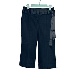 These gorgeous capris feature a shiny black fabric and tuxedo waistband. Super cute!