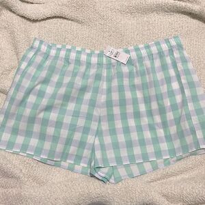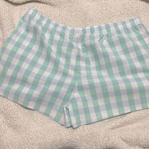 Plaid print patterned, elastic waistband, sleep short, approx 3” inseam
