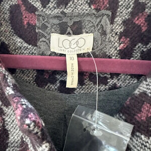 Lori Goldstein design with mauve, gray and white jacket. Mauve hem with camel colored cuffs & gray jersey lining. Side pockets with extra snap closures attached. Nice weight!