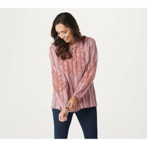NWT LOGO BY LORI GOLDSTEIN STRIPED WOVEN EMBROIDERED BLOUSE BLUSH SMALL