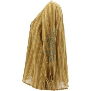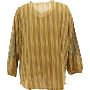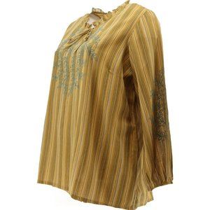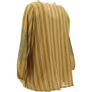 NWT (NEW IN BAG) LOGO BY LORI GOLDSTEIN STRIPED WOVEN EMBROIDERED BLOUSE COLOR VINTAGE GOLD SIZE MEDIUM.