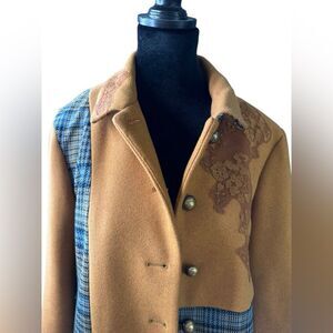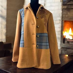 NWT LOGO Lavish by Lori Goldstein Coat with Plaid Panels & Mesh Appliques