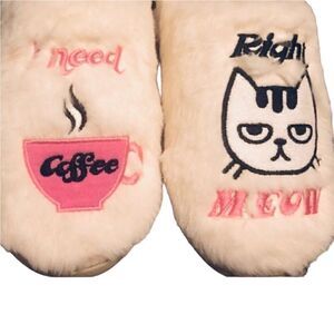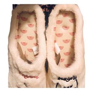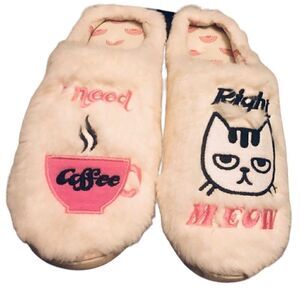 NWT LOLA Off White Bedroom Slippers Clogs Coffee & Cat Lovers Rubber Sole Sz 7.5