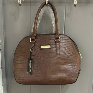NWT LONDON FOG Caroline Lizard Satchel Brown
