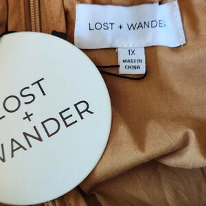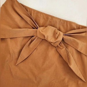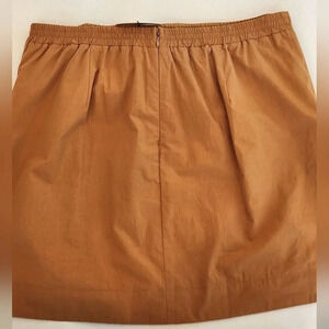 Rust colored mini skirt in size 1x by Lost+Wander. This is a casual skirt with an athletic type of fabric. The sash and bow make a darling added detail. The waistband has elastic across the back with a zip closure and hook and eye. The skirt is lined.