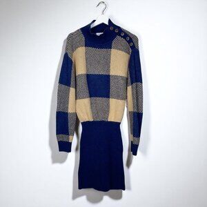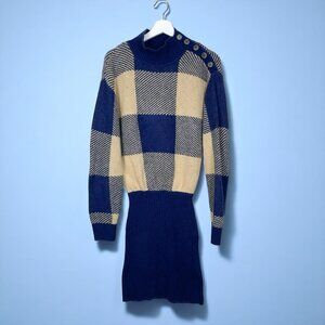 Put on the Lianna Mini Dress and be ready for all your fall outings! This autumn essential features a soft navy blue and cream checkered pattern. It’s a classic look that complements any wardrobe.