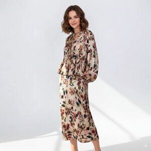 A beautiful, silky cream floral Top+skirt! featuring a blooming floral print