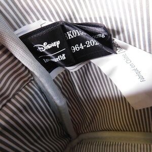 Small handle on the top/back edge ~ Adjustable nylon shoulder straps ~ Faux leather exterior ~ Zippered pouch/compartment on the front ~ Slip pockets on the sides ~ Zipper closure over the top ~ “Disney/Loungefly” logo placard on the front ~ Bottom of the back and trims are a solid black ~ Interior is lined with a striped fabric ~ Creamy white background with a colorful nautical “tattoo” print featuring all your favorites from Little Mermaid including Ariel, Flounder, King Triton, Ursula, Sebastian and more!  Colors of the print are in shades of red, black, creamy white, yellow, blue & purple