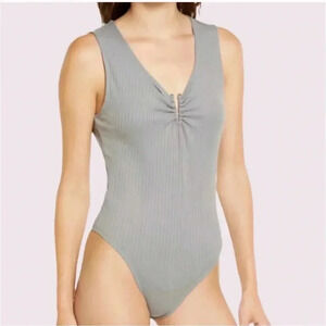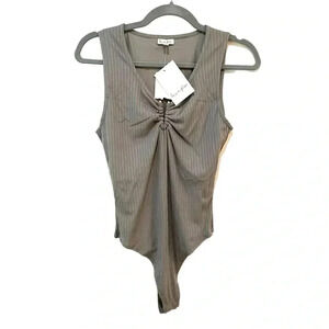 NWT LOVE FIRE Metal Notch Dark Gray Ribbed Bodysuit Sleeveless Ribbed Medium
