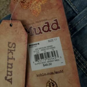 NWT LOVE, PEACE, HAPPINES, MUDD Size 11 skinny jeans