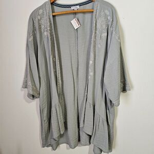 NWT LOVE,FIRE BOHO EMBROIDERED KIMONO LIGHT SEAFOAM SIZE MEDIUM