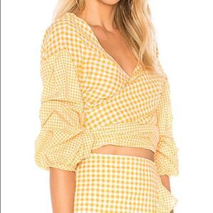 Worth getting wrapped up in. The Bow Blouse, a Lovers + Friends must-have, flaunts sexy wrap around styling in a classic crop top body. Marked by billowy sleeves with gathered detail and an on-trend print, this top shows gingham done right.