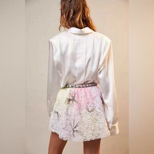 NWT LOVESHACKFANCY KEZIA MINI SKIRT Multi Tie Dye Pink Lilac White Crystals
