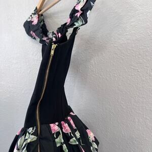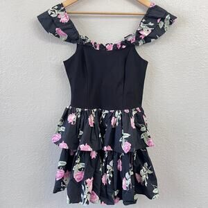 NWT LOVESHACKFANCY BLACK FLORAL PRINTED TIERED MINI DRESS