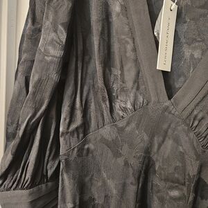 NWT LOVESHACKFANCY revaline plunge blouson sleeve ruffled dress in black