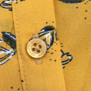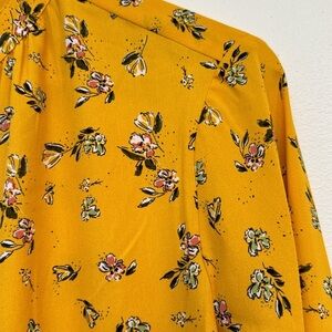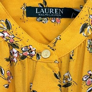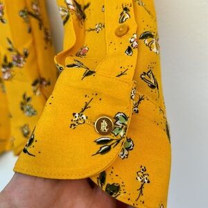 NWT LRL Button Down Ruffled Gold Yellow Floral Blouse Top Button Cuffs Size L