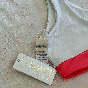 NWT L*SPACE Miller Colorblock Bikini Top Neon Pink/White - Size: Large