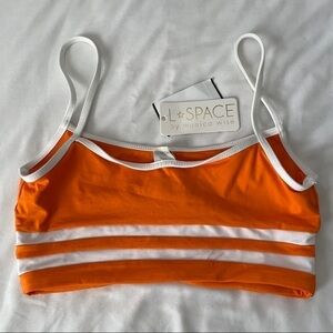 NWT L*SPACE Orange and White Stripe Bikini Top Small