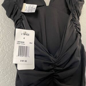 NWT L*SPACE Sydney Ruched Classic One Piece Swimsuit Black 4