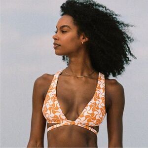 NWT L*Space Avery Bikini Top Orange and White Size Medium