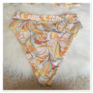 Eco Chic Soulshine Yellow Blue Floral Multicolor Print Twist Front Lightly Padded Adjustable Straps Top High Cur Cheeky Twist Front Pull On Bottoms By L*Space