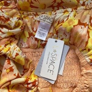 NWT L*Space Cassidy Long Sleeve Flowy Peasant Dress Yellow Floral Women's Small